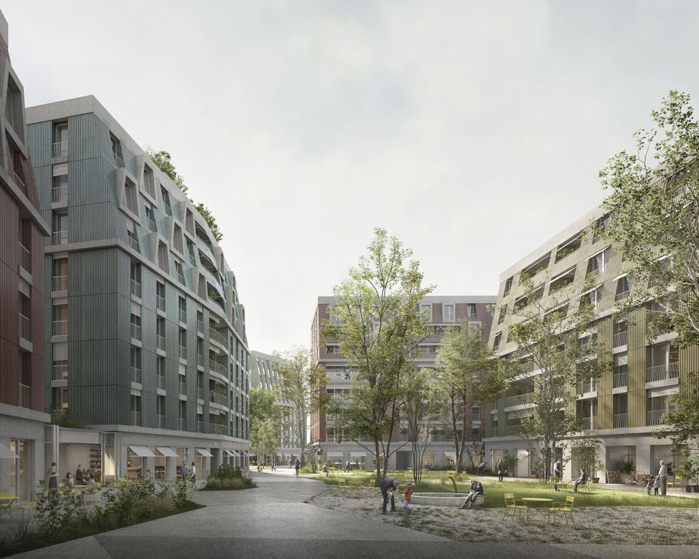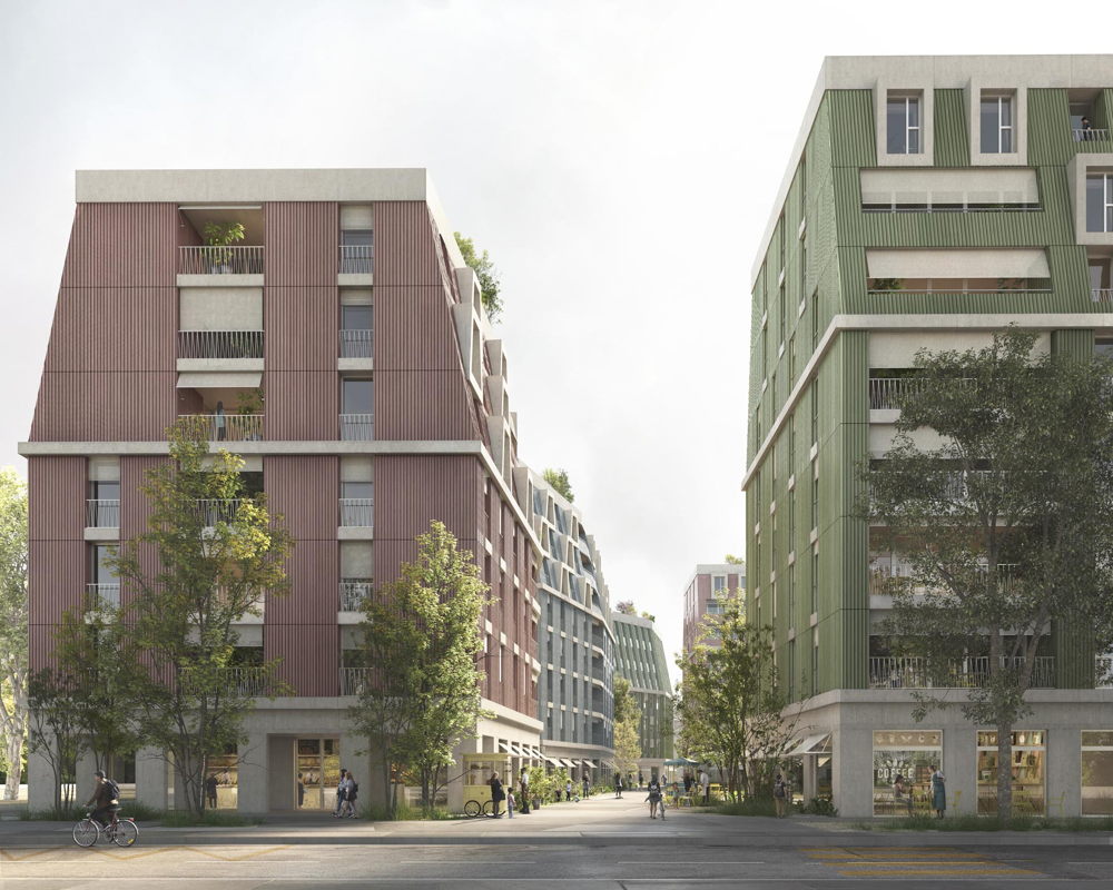 Zürich, 4. Mai 2023 - Mit dem ‹Quartier der tanzenden Paare› gewinnen KCAP (Städtebau und Architektur), Studio Vulkan (Landschaft) und Raumanzug (Nachhaltigkeit) den Studienauftrag für ein neues Wohnquartier mit 279 Wohnungen in der Nähe von Zürich. Wangen-Brüttisellen ist eine stark wachsende Gemeinde, die eine Verdichtung plant. Eines der für die Überbauung vorgesehenen Grundstücke ist das Erni-Areal, ein ehemaliges Industriegebiet in der Nähe des Bahnhofs. Ziel war es, ein dichtes und lebenswertes Quartier in einem kontrastreichen, fast kakophonischen Umfeld zu schaffen.