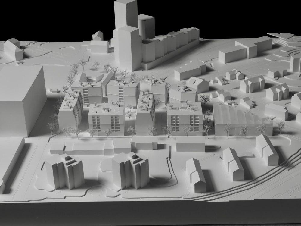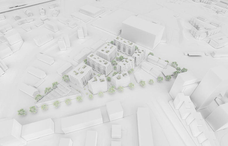 Im Auftrag der Erni Liegenschaften hat Mobimo Management fünf Teams eingeladen, das ehemalige Erni-Areal in Wangen-Brüttisellen zu entwickeln. Das teilweise überbaute Areal soll in ein verdichtetes Quartier mit Wohnen, Büros, Handel und Gastronomie transformiert werden. Das Grundstück ist umgeben von kleinteiliger Wohnbebauung, kompakten Hochhäusern und verschiedenen Gewerbebetrieben – darunter ein Hochregallager für Coca-Cola. Da das Unternehmen derzeit seine Aktivitäten ausweitet, werden die Grössenunterschiede noch grösser. Darüber hinaus ist der Standort stark lärmbelastet, da er sich in der Nähe einer Autobahnausfahrt, an einer stark befahrenen Durchgangsstrasse und direkt unter der Einflugschneise des Flughafens Zürich befindet. Ein solch anspruchsvoller Standort erforderte eine präzise Entwurfslösung.