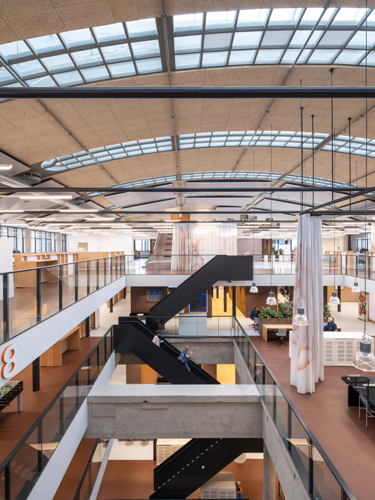 This intervention also recalls the grandeur of the machines that once dominated the space. Irma van Oort, partner at KCAP: “The atrium, surrounded by cascading floors and traversed by bridges and stairs, can be read as a metaphor for the conveyor belts and sorting machines that used to deliver mail directly from the station.” These informal routes help people to get together but also to explore the space by individual means, fostering a pleasant, spontaneous atmosphere.
