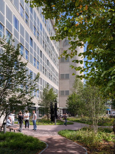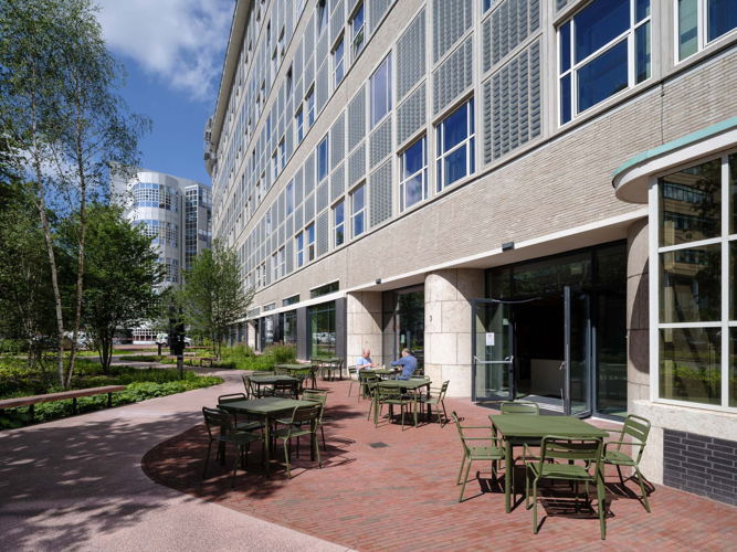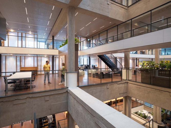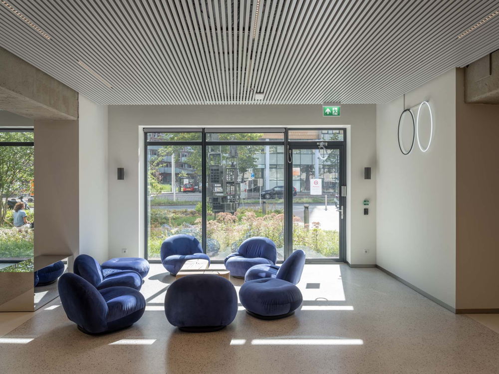 The first floor houses the ‘Community Centre’ with a reception, café, common areas, meeting zones and workspaces. The upper floors have a flexible set-up, which allows a variety of workplace concepts to be offered and arranged according to different users’ needs. Efficient floor plans and innovative technical features also allow for flexibility in the future. “Crucial to the transformation is creating an office building for a new way of working, making the work environment feel like a living room: widely usable, but also secure”, says Irma van Oort.
