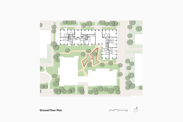 The courtyard plays an essential role in the overall design: it stimulates activities by the residents, leaves room for future use, and enhances a sense of ownership among users and residents. A pronounced materialisation and careful detailing characterises these interventions to create an exciting yet timeless green landscape architecture.