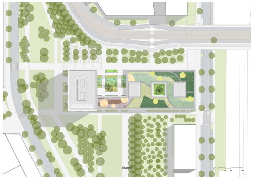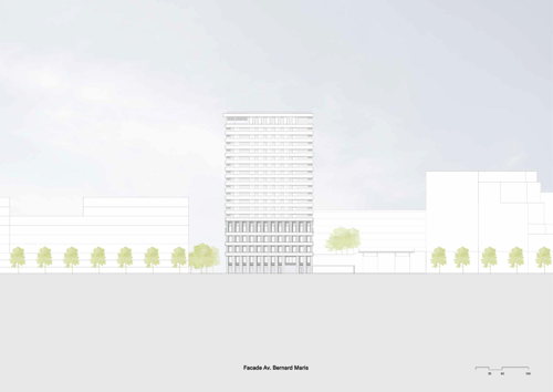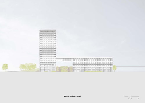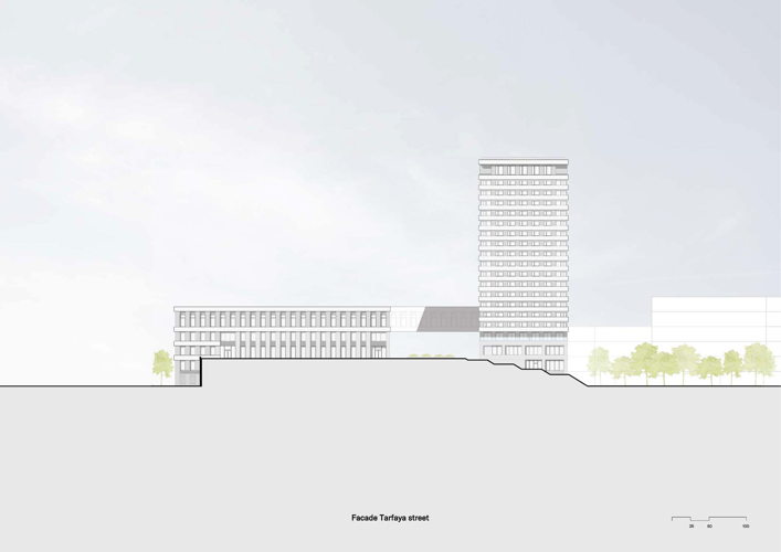 "KCAP heeft als ambitie om leefbare steden te creëren. Dat de opdracht vroeg om een monumentaal gebaar vormde in zekere zin dus een uitdaging. Onze oplossing was om de menselijke maat te zoeken: in de afmetingen van de overspanning, maar ook in het ontwerp op straatniveau - vooral bij het lagere volume", legt Xavier Blaringhem uit. De bouwvolumes zijn afgestemd op hun locatie en op de manier waarop ze benaderd worden. De straat direct achter het complex - de rue Tarfaya - ligt bijvoorbeeld op een hoger niveau dan de landingsbaan; daar komt bij dat deze straat een doorgangsweg is, en de toegang tot het gebouw daardoor minder goed leesbaar is. Maar de rue Tarfaya is ook de locatie van de toekomstige bus- en metrohalte, waardoor het hier des te belangrijker was om op straatniveau te ontwerpen vanuit de menselijke maat.