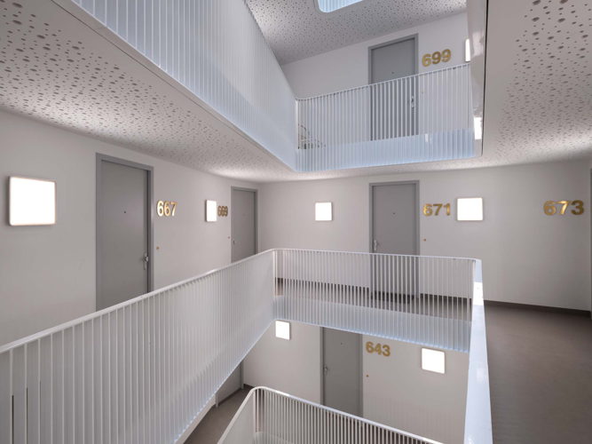 De vides brengen licht, lucht en ruimtelijkheid in het binnenklimaat. Dit wordt versterkt doordat de gangen vanaf de driedubbelhoge entrees zoveel mogelijk door de lengte van het blok heen lopen. Zo zijn er royale binnenruimtes ontstaan waar mensen contact met elkaar kunnen maken. "Hier geen kale, anonieme gangetjes met alleen maar deuren, maar vides en ruime hallen met licht van boven, waardoor je mensen ziet binnenkomen, door het gebouw heen ziet lopen, thuis ziet komen. Dat creëert saamhorigheid, niet alleen met je directe buurman maar met al je medebewoners", aldus Irma van Oort.